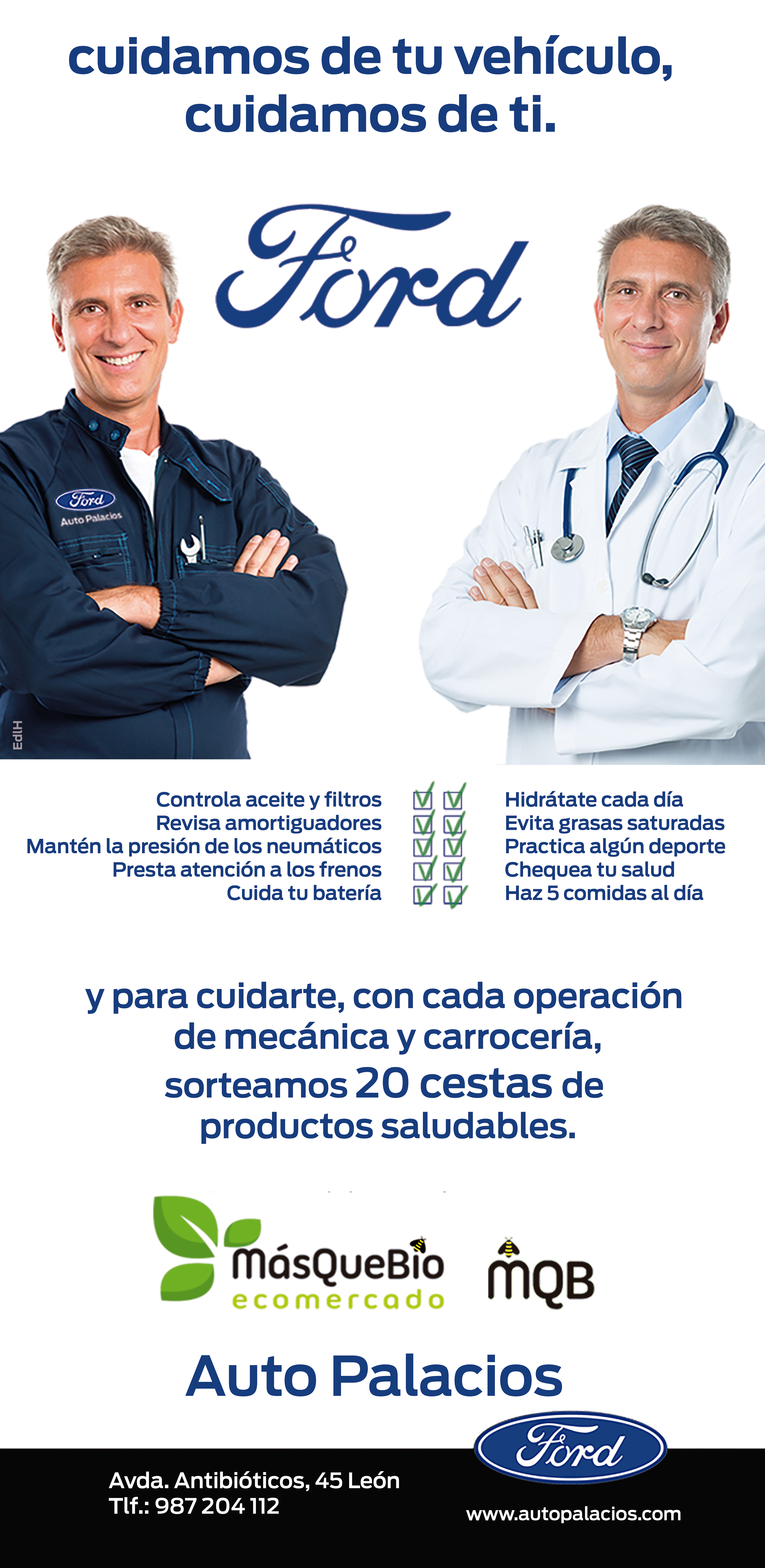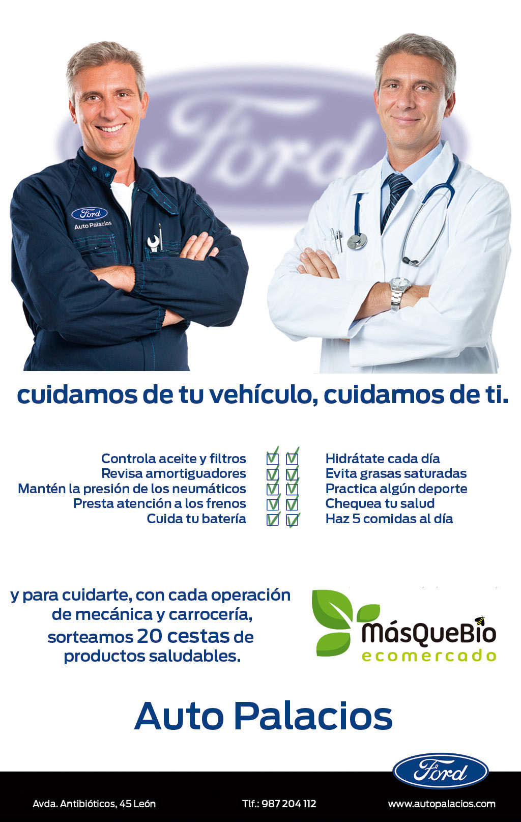 Campaña para AutoPalacios centrada en el servicio técnico, que cuidan de tu vehículo, pero también de ti, como persona; vinculando y generando sinergías con el mundo saludable de Más Que Bio.